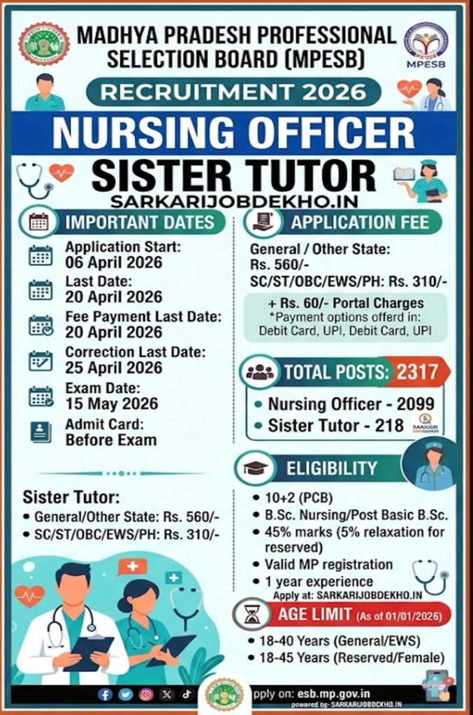 MPESB Nursing Officer and Sister Tutor Recruitment 2026